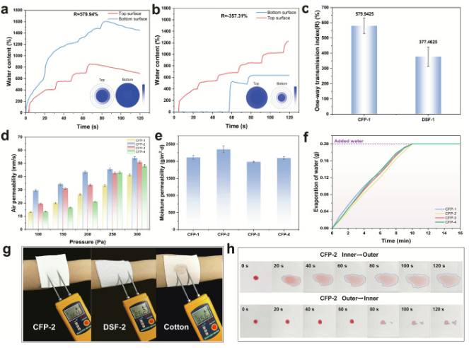 图4:制备的CFP的水分管理能力。