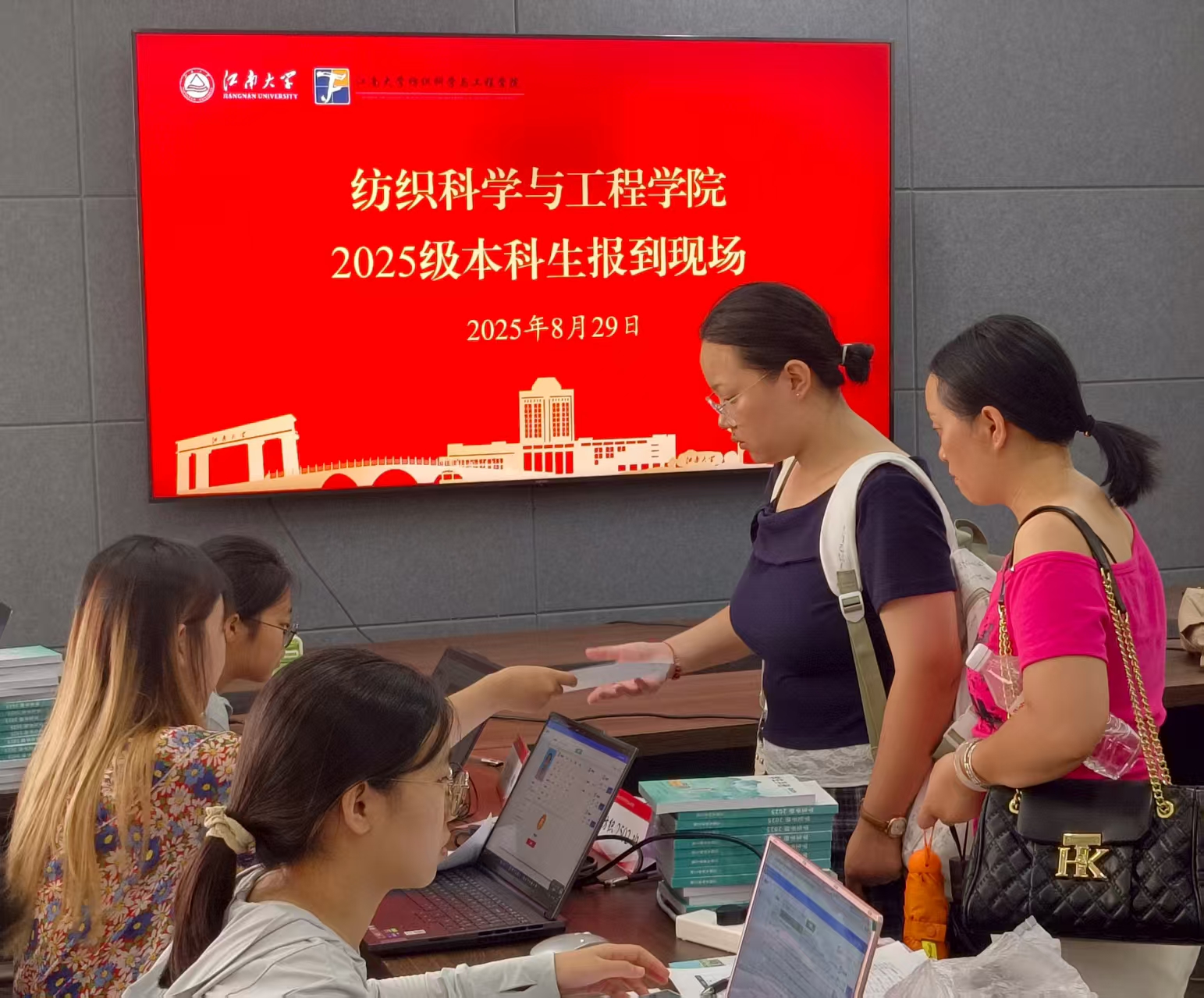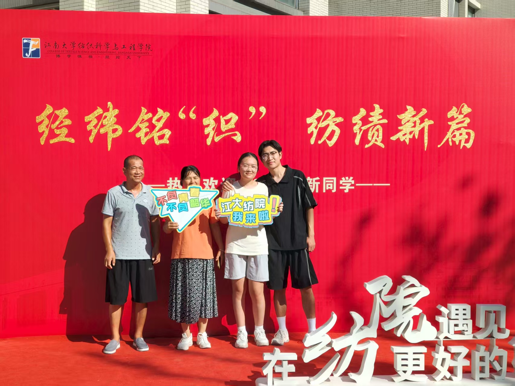 门口,新生与家人纷纷在此留下与纺院的第一张合影,定格这份难忘的初见。抖阴