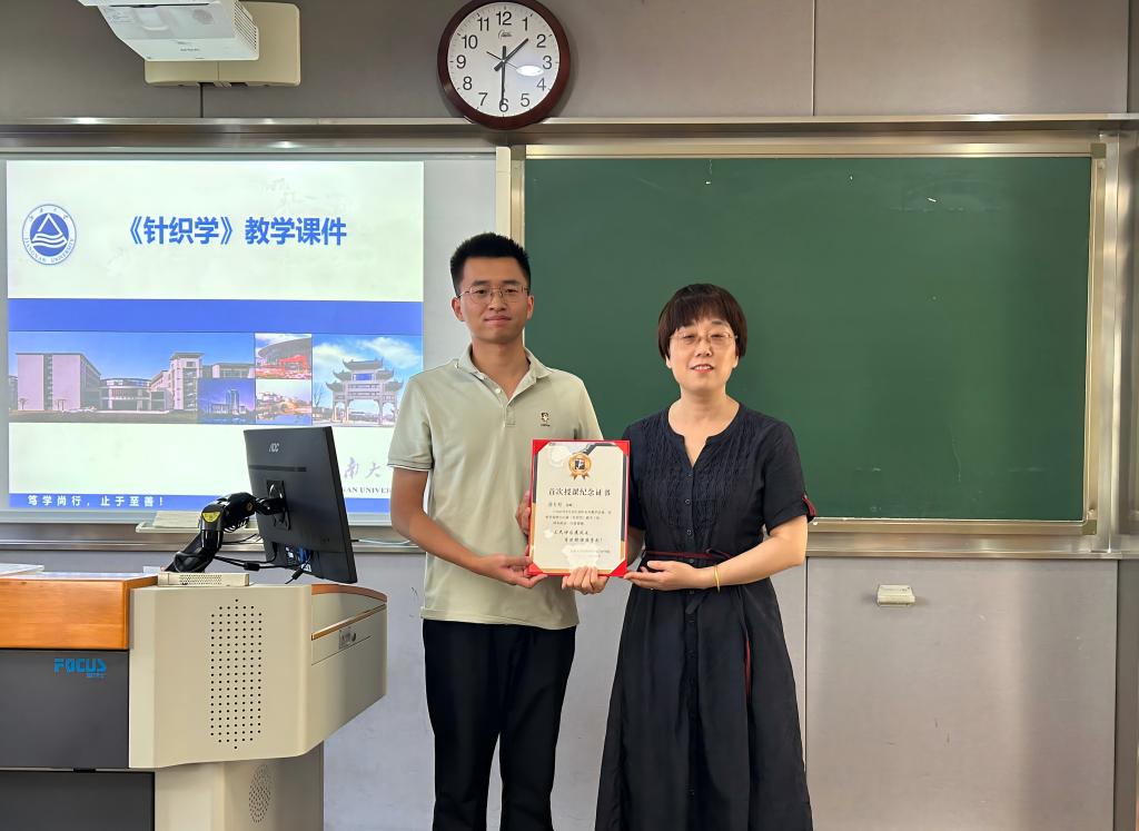 ,经过半年的岗前培训与教学准备,9月份首次为纺织2303班讲授《针织学》课程。颁发仪式上,张菁燕介绍了薛老师的学习经历和在读博期间取得的成就,她希望薛老师能将自身扎实的学术基础和创新思维带入课堂,为抖阴