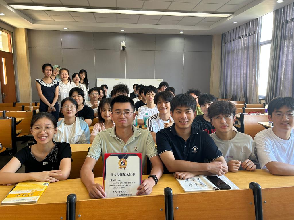 为新入职教师薛有松举办首次授课纪念证书颁发仪式,抖阴