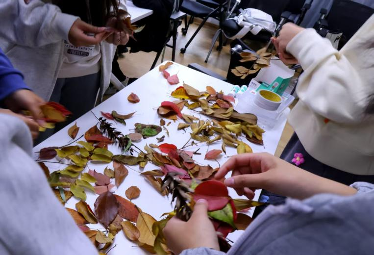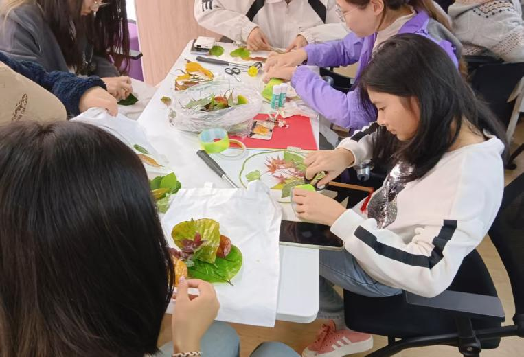 青年志愿者协会在梅园一站式社区举办“落叶剪影×植物拓印”活动。