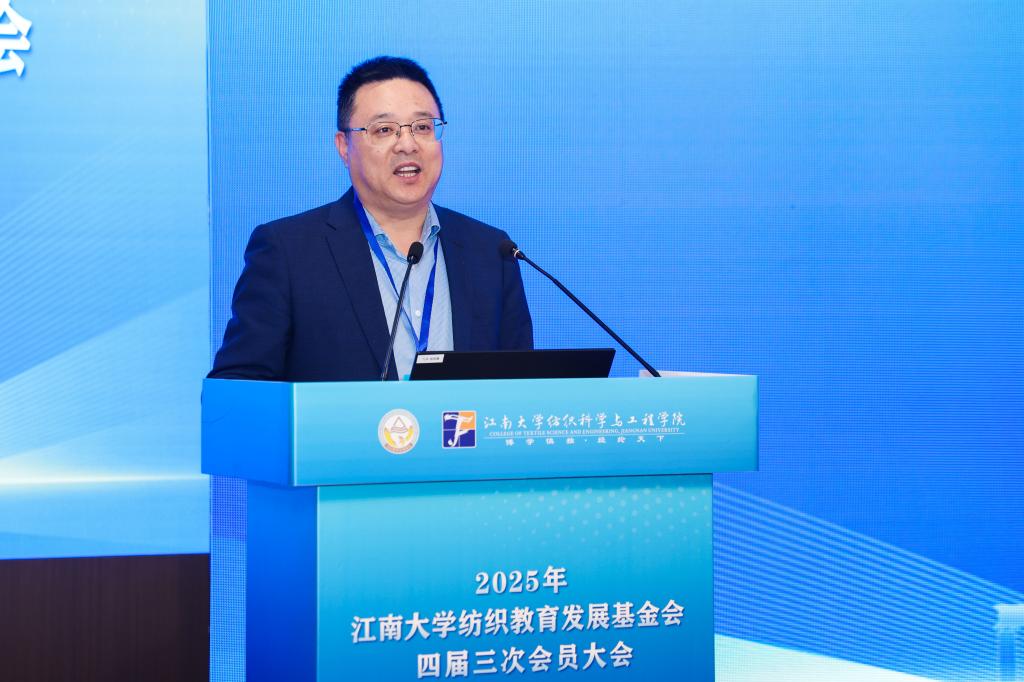 高卫东作基金会年度工作报告,他从基金会概况、本年度工作、下一步工作计划向与会会员汇报。展望未来,他表示基金会将继续深化拓宽资源对接渠道,深化产学研协作机制,联合八方校友赋能学校教育事业发展,携手构建校友与母校命运共同体,共创江南纺织教育事业的美好未来。