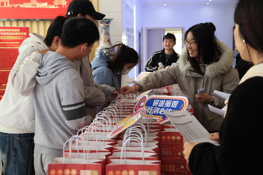 领导班子向学子致以暖心问候与殷切期许,关切询问每位同学的复习进度,叮嘱大家科学规划时间、注重学习方法,避免盲目消耗精力;反复强调劳逸结合的重要性,提醒学子们通过运动、交流及时疏解压力,以饱满身心迎接挑战:更鼓励大家将考研视作人生跃升的阶梯,在深耕专业的同时拓展学术视野,为未来职业发展筑牢根基。