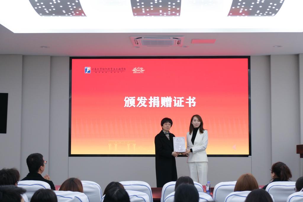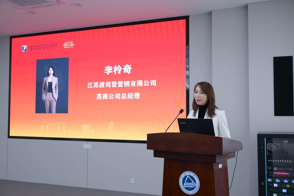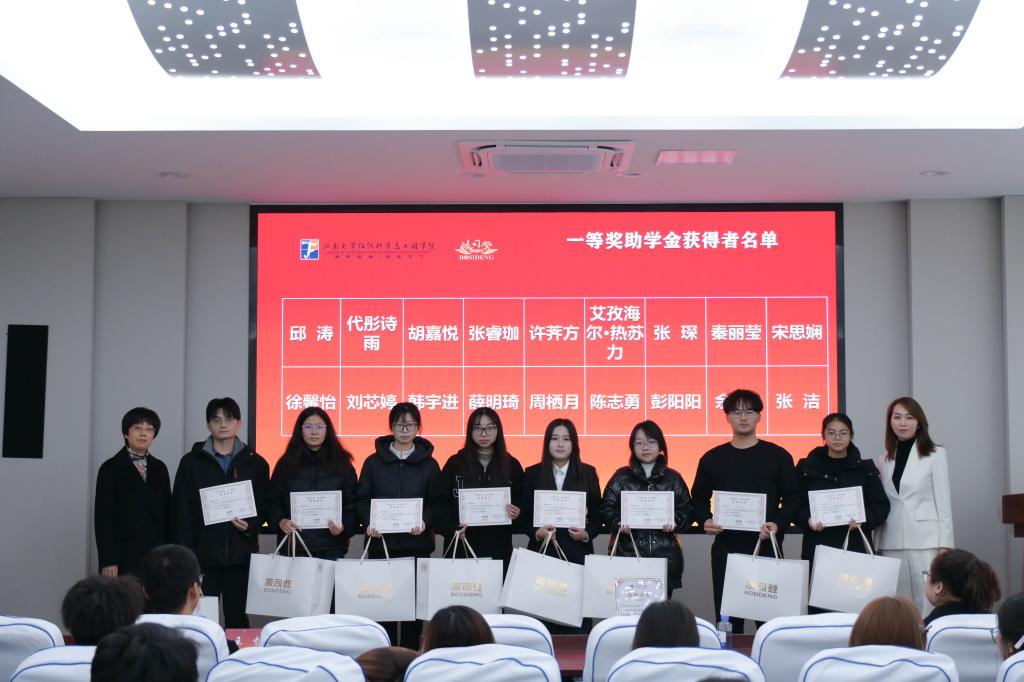 A103报告厅举行2025年“波司登公益奖助学金”颁奖典礼。江苏波司登营销有限公司苏南公司总经理李柃奇、高级零售经理周依婷,抖阴