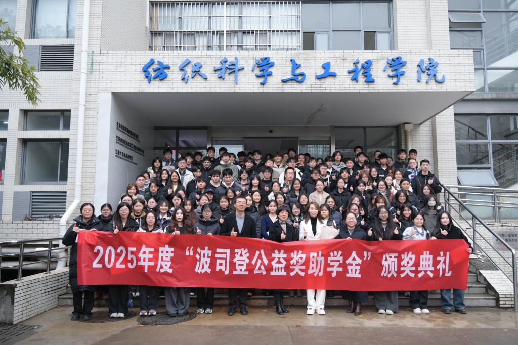 取得的成绩。她希望同学们在未来的发展中常怀创新发展的进取之心、以责为帆的担当之心、饮水思源的感恩之心,勇于实践,敢于创新,为中国纺织行业发展贡献自己的青春智慧。