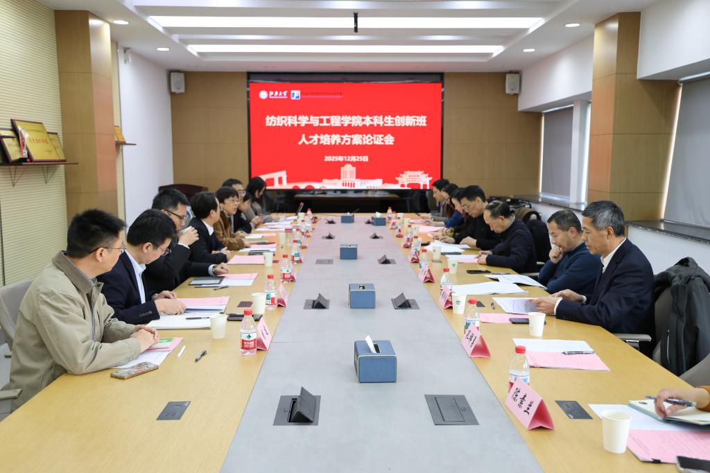 在纺织楼A306会议室召开2026级创新班人才培养方案论证会。论证专家团队由中国工程院院士、东华大学孙以泽教授领衔,抖阴