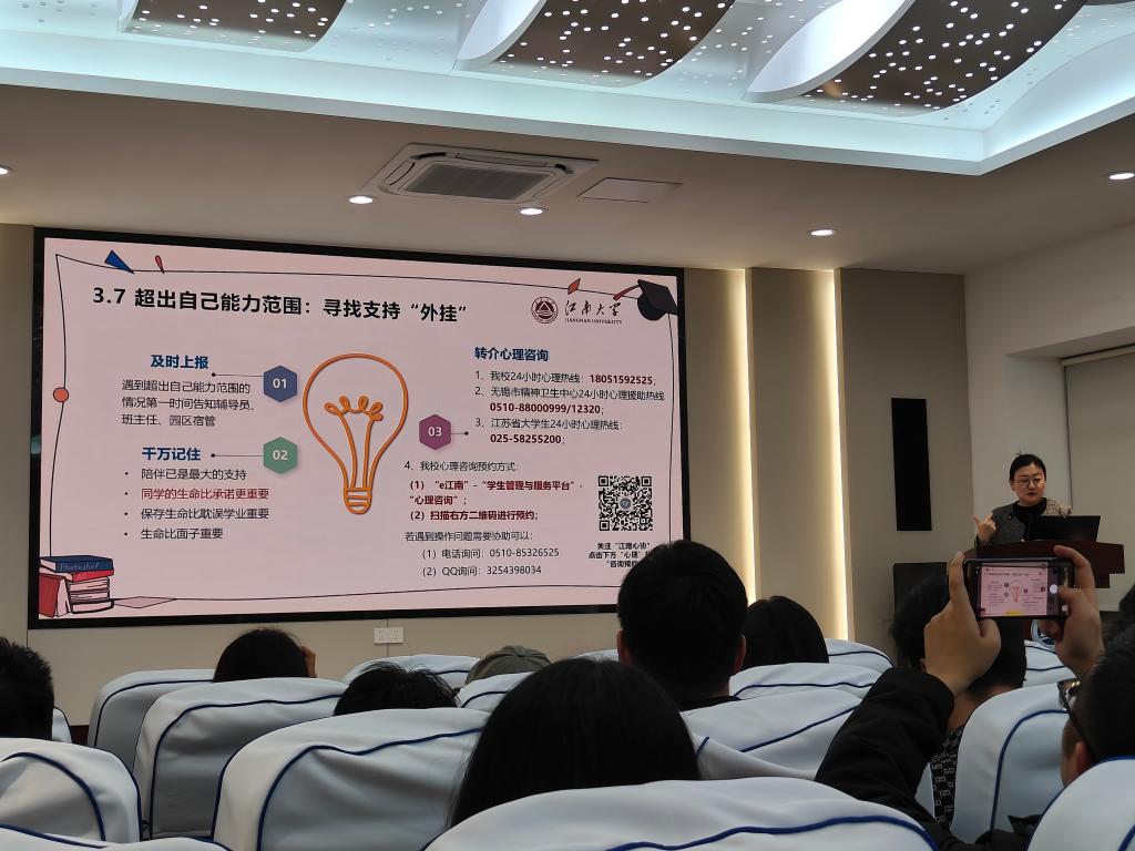 分年级开展宿舍长专项培训。面向低年级宿舍长,重点讲解宿舍人际关系协调、新生适应引导、日常心理状态观察等内容,引导宿舍长主动关注室友情绪变化,及时化解宿舍矛盾,帮助新生快速适应大学生活;面向高年级宿舍长,聚焦学业压力疏导、就业焦虑缓解、宿舍安全隐患排查等重点,指导宿舍长发挥“领头雁”作用,带动宿舍成员互帮互助、共同进步,同时明确宿舍长在心理危机预警中的职责,确保及时发现、准确上报、有效干预。