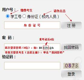 网上缴费平台”,完成缴费。考生账号已开通,切勿自行注册。收费标准:80元/生(仅申请考核考生,硕博连读考生无须缴费)。用户号在“学工号”输入正确的身份证号,初始密码(9位):“BS”+准考证编号后4位+“@fs”(准考证查看网址://yzgmis.douyinweb.net/zsgl/bswb/login.aspx),如“BS1234@fs”。非首次登录缴费系统的考生(含往年报考考生及误注册考生)请使用“找回密码”,登录并缴费。